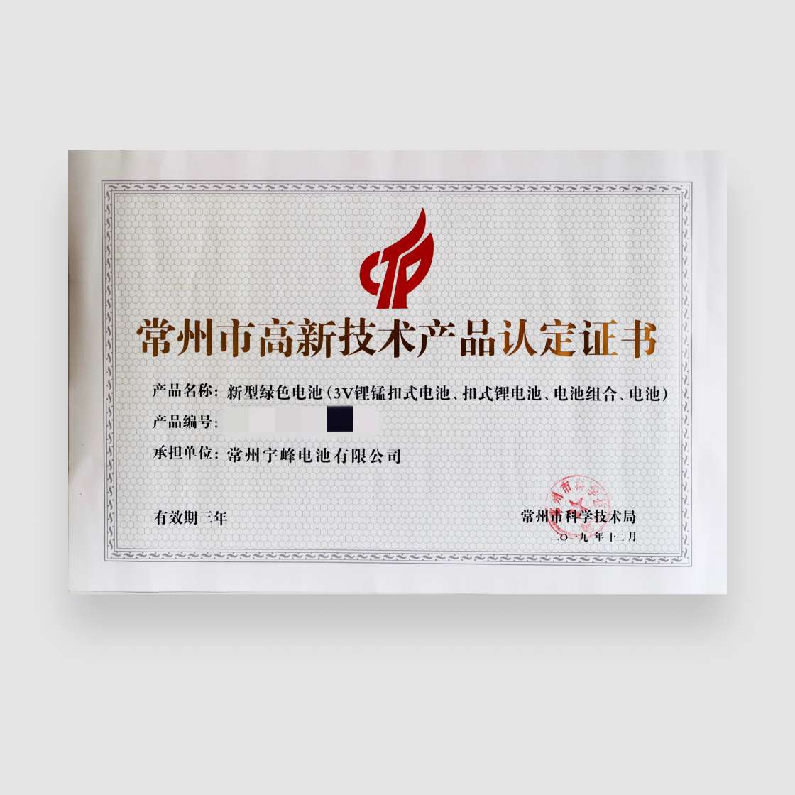 公司產(chǎn)品CR2450,CR2477 電池為“省高新技術(shù)產(chǎn)品”